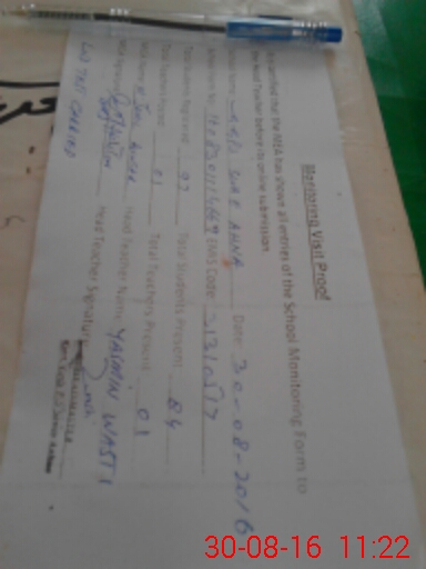 | School Visited by School Health & Nutrition Supervisor (No. of Visits) | 1 | Name1: | M Javid | Name2: | Nil |