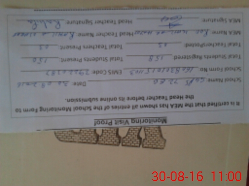 | Certified that this School was Inspected by the Undersigned MEA/DMO Today and the Information Stated Above is as Per Record. | |||||