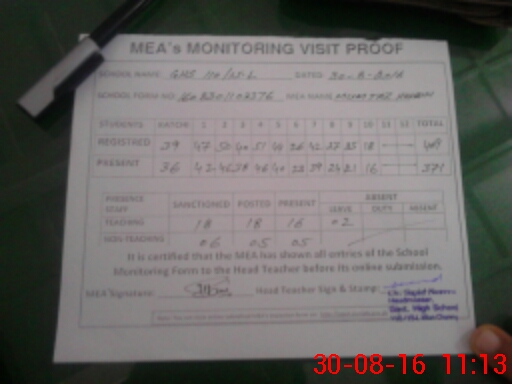 | Certified that this School was Inspected by the Undersigned MEA/DMO Today and the Information Stated Above is as Per Record. | |||||