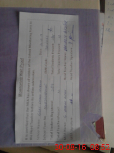 | Certified that this School was Inspected by the Undersigned MEA/DMO Today and the Information Stated Above is as Per Record. | |||||