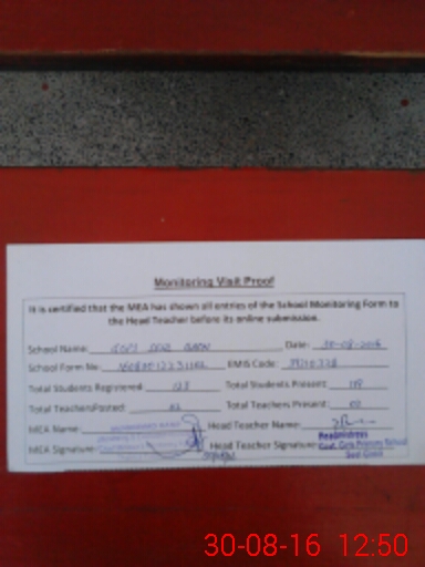 | Attendance Register | Head Teacher | MEA with School | Visit Proof |