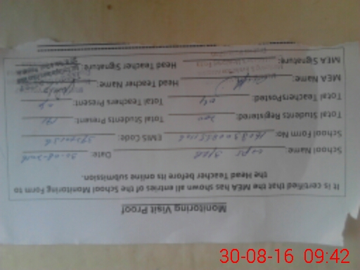 | Attendance Register | Head Teacher | MEA with School | Visit Proof |