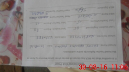 | School Visited by School Health & Nutrition Supervisor (No. of Visits) | 1 | Name1: | ZAHIDA YASMIN | Name2: | |