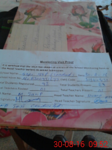 | Attendance Register | Head Teacher | MEA with School | Visit Proof |