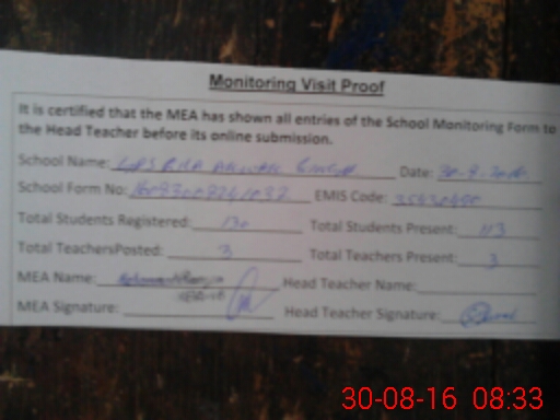 | Certified that this School was Inspected by the Undersigned MEA/DMO Today and the Information Stated Above is as Per Record. | |||||