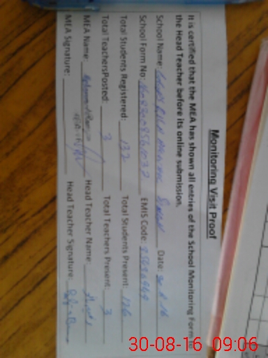| Attendance Register | Head Teacher | MEA with School | Visit Proof |