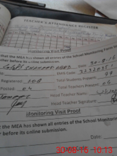 | Attendance Register | Head Teacher | MEA with School | Visit Proof |