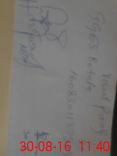 | Name: Ta**** Ba**** Designation: (School Headmaster's/Headmistress's) Sse sci Phone/Cell Number: 03**** |