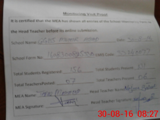 | Certified that this School was Inspected by the Undersigned MEA/DMO Today and the Information Stated Above is as Per Record. | |||||