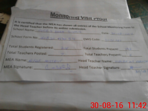 | Attendance Register | Head Teacher | MEA with School | Visit Proof |