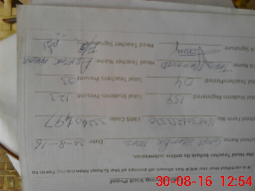 | School Visited by School Health & Nutrition Supervisor (No. of Visits) | Name1: | SAKHAWAT ALI | Name2: | ||