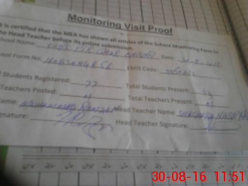 | EMIS Code: 31150272 | Name of School: GMPS PIR GHAR CHISHTI | |||