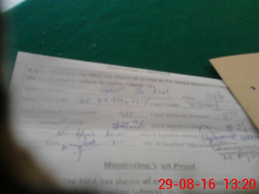 | Remarks (Use Separate Page if Required): HM of the school not allowed MEA to visit the school so cleanliness functionality of various facilities and head counting based on verbal statement of HM | |||||