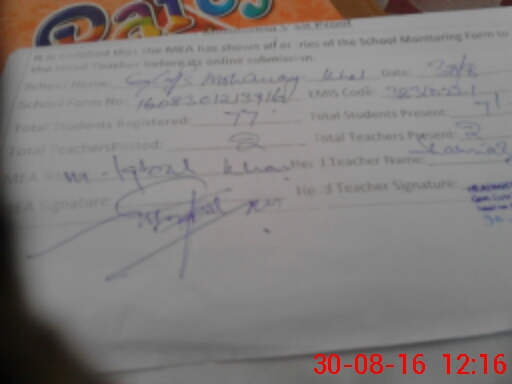 | Certified that this School was Inspected by the Undersigned MEA/DMO Today and the Information Stated Above is as Per Record. | |||||