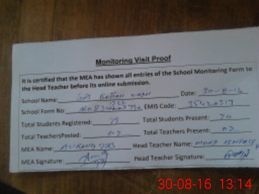 | Attendance Register | Head Teacher | MEA with School | Visit Proof |