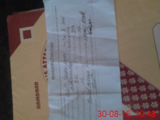 | Monitoring Date: 30-08-2016 | Start Time: 30-08-2016 10:18 AM | End Time: 30-08-2016 10:53 AM | Name of MEA: Kh**** Hu**** | |