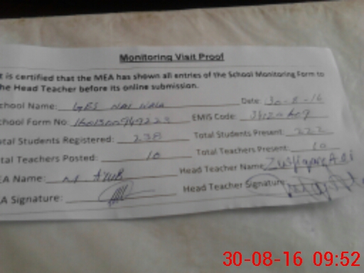 | Certified that this School was Inspected by the Undersigned MEA/DMO Today and the Information Stated Above is as Per Record. | |||||