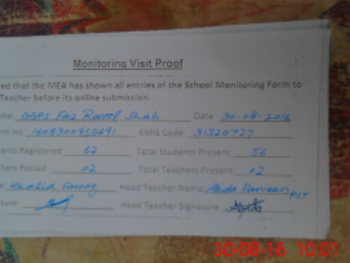 | EMIS Code: 31320727 | Name of School: GGPS FAIZ RASOOL SHAH | |||