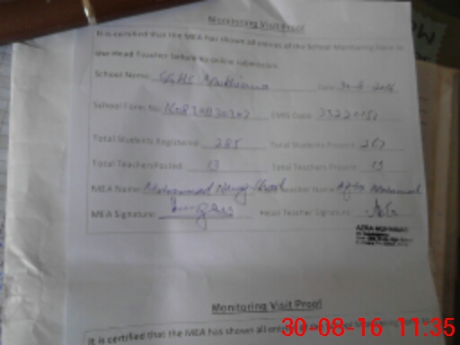| 1 | 19/05/2016 | MUHAMMAD ASIF HM GHS MUKHIANA | ||