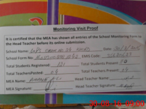 | Attendance Register | Head Teacher | MEA with School | Visit Proof |