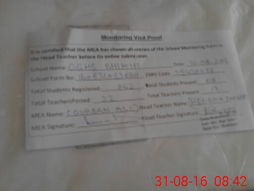 | Certified that this School was Inspected by the Undersigned MEA/DMO Today and the Information Stated Above is as Per Record. | |||||