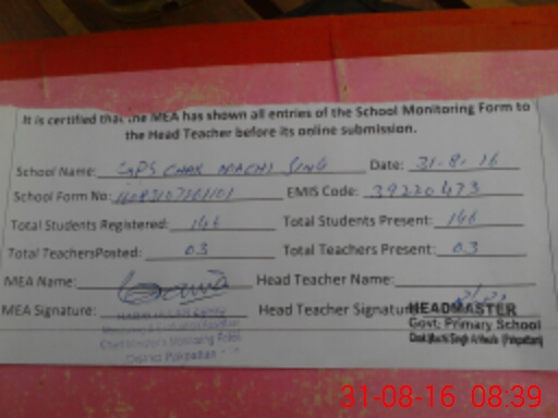 | EMIS Code: 39220473 | Name of School: GPS CHAK MACHI SINGH | |||