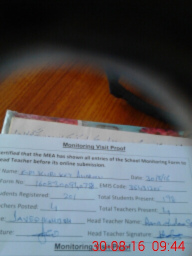 | Attendance Register | Head Teacher | MEA with School | Visit Proof |