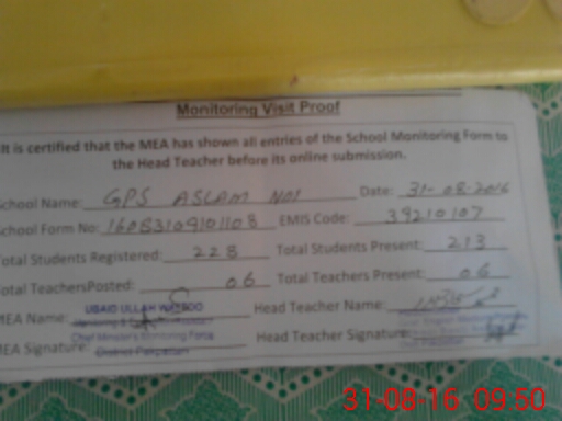 | EMIS Code: 39210107 | Name of School: GPS BASTI ASLAM NOI PAKPATTAN | |||