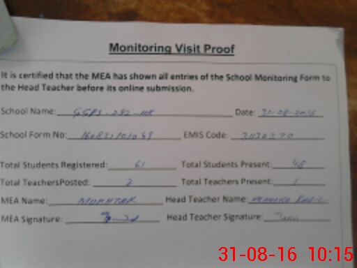 | Certified that this School was Inspected by the Undersigned MEA/DMO Today and the Information Stated Above is as Per Record. | |||||