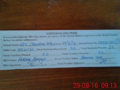 | Attendance Register | Head Teacher | MEA with School | Visit Proof |