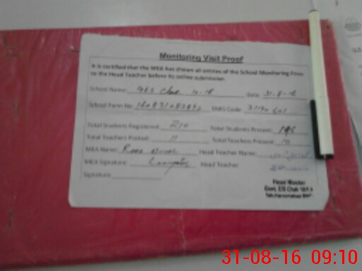 | Attendance Register | Head Teacher | MEA with School | Visit Proof |