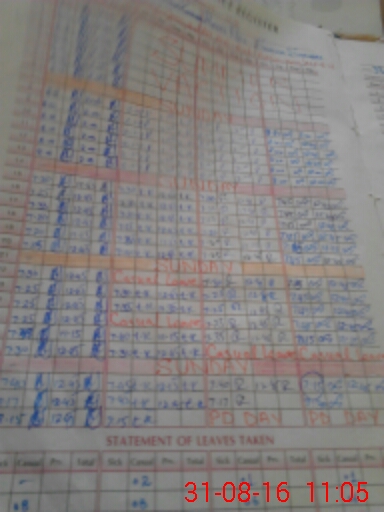 | CNIC | Full Name | Designation | R/C | Absence During Last Calender Month |