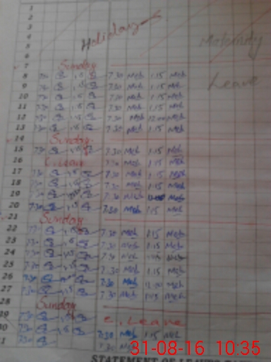 | CNIC | Full Name | Designation | R/C | Absence During Last Calender Month |