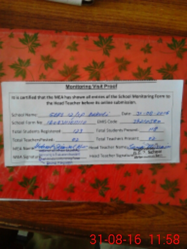 | Attendance Register | Head Teacher | MEA with School | Visit Proof |