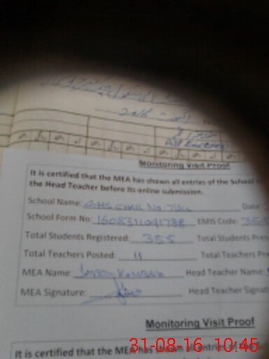 | Certified that this School was Inspected by the Undersigned MEA/DMO Today and the Information Stated Above is as Per Record. | |||||
