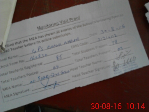 | Attendance Register | Head Teacher | MEA with School | Visit Proof |