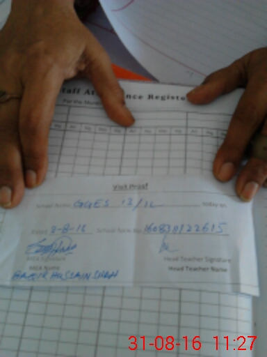 | Attendance Register | Head Teacher | MEA with School | Visit Proof |