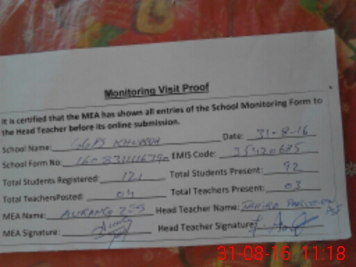 | EMIS Code: 35420685 | Name of School: GGPS KHUNDA | |||