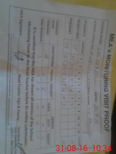 | Attendance Register | Head Teacher | MEA with School | Visit Proof |