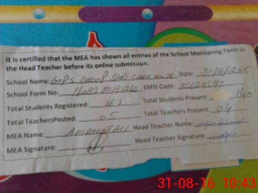 | Certified that this School was Inspected by the Undersigned MEA/DMO Today and the Information Stated Above is as Per Record. | |||||