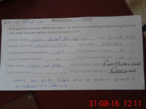 | Certified that this School was Inspected by the Undersigned MEA/DMO Today and the Information Stated Above is as Per Record. | |||||
