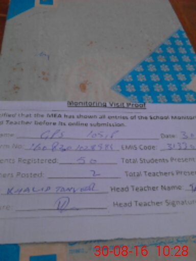 | EMIS Code: 31330262 | Name of School: GPS CHAK 105/P | |||