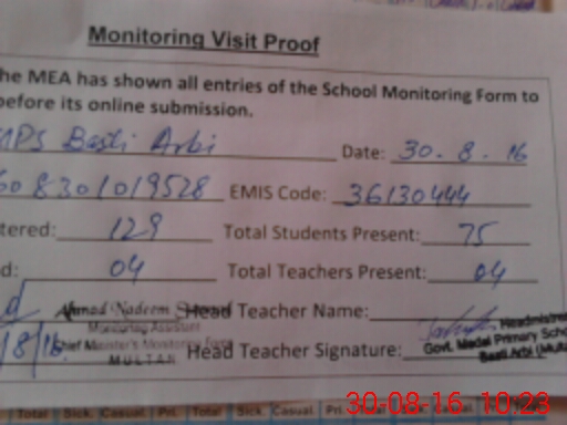 | EMIS Code: 36130444 | Name of School: GMPS BASTI ARBI MUKHDOOM RASHED | |||