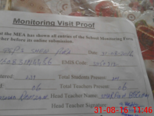 | Attendance Register | Head Teacher | MEA with School | Visit Proof |