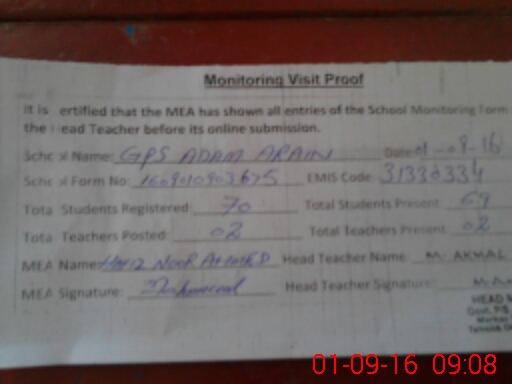 | EMIS Code: 31330334 | Name of School: GPS ADAM ARAIN PO SARDAR GARH | |||