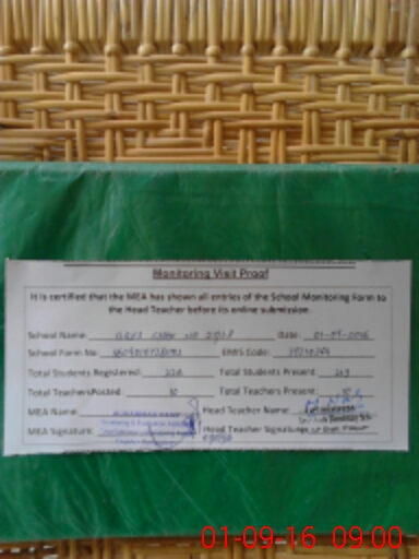 | Attendance Register | Head Teacher | MEA with School | Visit Proof |