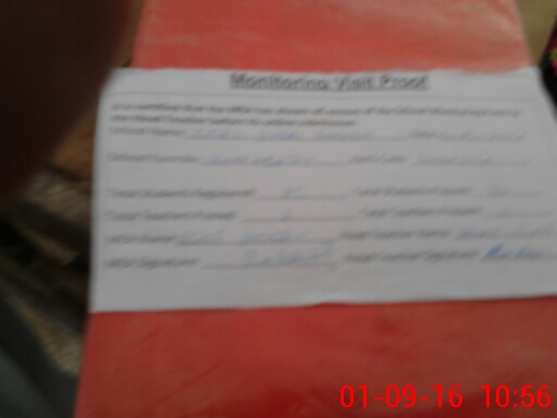 | Monitoring Date: 01-09-2016 | Start Time: 01-09-2016 10:49 AM | End Time: 01-09-2016 10:58 AM | Name of MEA: Al**** Hu**** BN**** | |