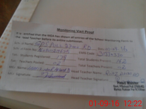 | Certified that this School was Inspected by the Undersigned MEA/DMO Today and the Information Stated Above is as Per Record. | |||||