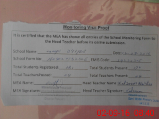 | Certified that this School was Inspected by the Undersigned MEA/DMO Today and the Information Stated Above is as Per Record. | |||||