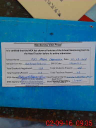 | Attendance Register | Head Teacher | MEA with School | Visit Proof |